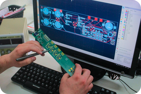 Projeto de circuitos, PCB, Layouts e Frameware para atender requisitos de qualidade e confiabilidade.
